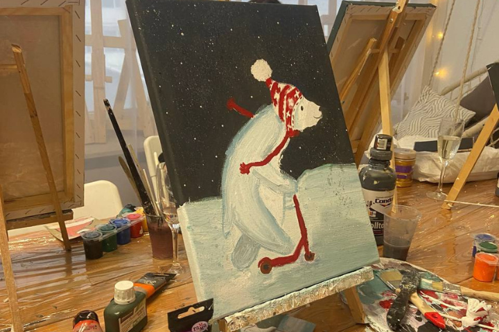 Представьте: уютная студия, пахнет мандаринами, в руках — кисть, а перед вами чистый холст. Вам не нужно быть художником, чтобы уйти с готовой картиной. Нужно лишь желание творить и праздничное настроение.