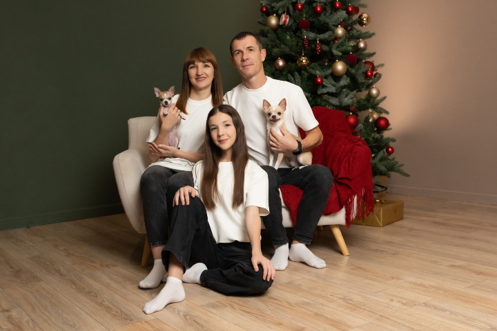 Съемка длится 55 минут в празднично украшенном новогоднем зале. Вы, ваша компания или даже питомец, фотограф и волшебная атмосфера — всё в одном пространстве. Расслабьтесь, обнимайтесь, улыбайтесь и полностью доверьтесь профессионалу. Фотограф ловит самые живые и радостные моменты, пока вы просто наслаждаетесь праздником.