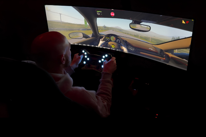 - Погружение в кокпит. Садитесь в профессиональное кресло. Настраиваете руль, педали, кресло под себя. Надеваете наушники или VR-шлем. Экран оживает. Вы - на трассе.