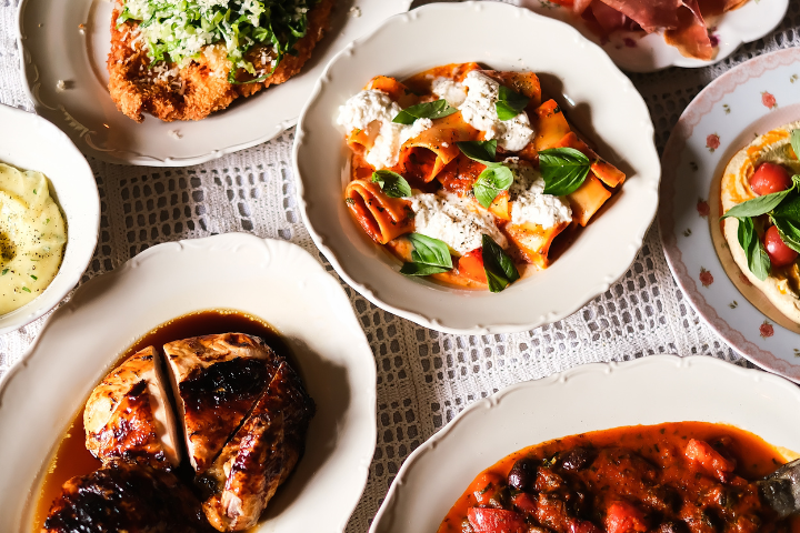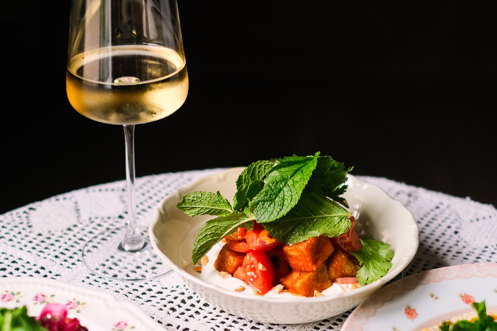 С 16:00 до 16:30 кухня делает паузу – в это время она готовится удивлять гостей вечерними позициями (но сам ресторан продолжает работу). А уже после 16:30 вас ждет насыщенное основное меню: тосты с креветками, тартар из говядины, салат с баклажаном, цезарь, а на горячее – паста арабьята, пол цыпы с пюре раклет, сибас путанеска или дабл чизбургер с пикули. На десерт – чизкейк с клубникой или сочный шоколадный торт.