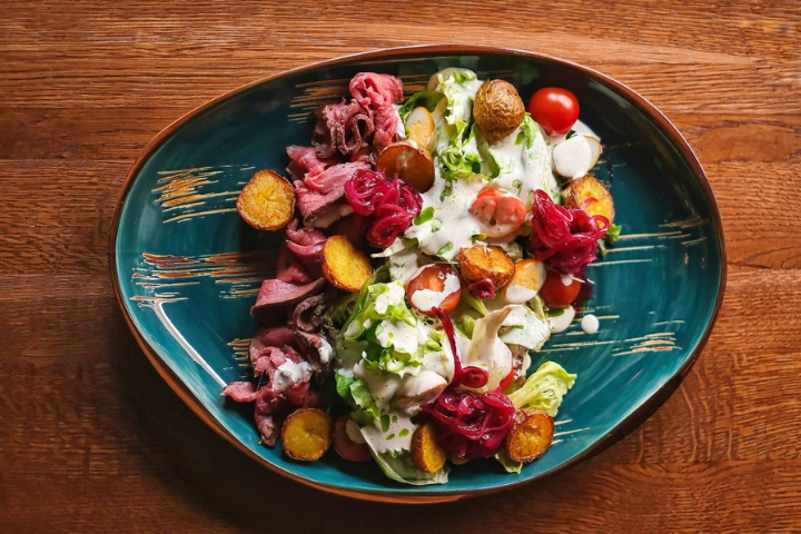 Для мясоедов: нежнейший филе миньон с печёными томатами и картофельным кремом, насыщенный говяжий брискет с печёным картофелем и сливочно-грибным соусом или тающие во рту говяжьи щечки с картофельным пюре, соусом демигляс и и гелем из чёрной смородины.