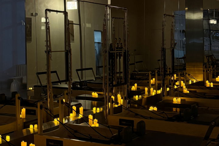 Отдельное удовольствие — занятия при свечах по выходным. Это уже настоящий медитативный опыт: приглушенный свет, спокойствие и полное переключение от суеты.